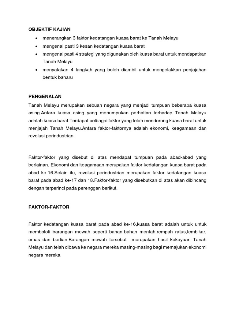 . Bab 1 campur tangan dan penjajahan kuasa barat. Mengenalpasti faktor kedatangan kuasa barat ke negara kita. Contoh objektif kajian kerja kursus sejarah pt3 2018.